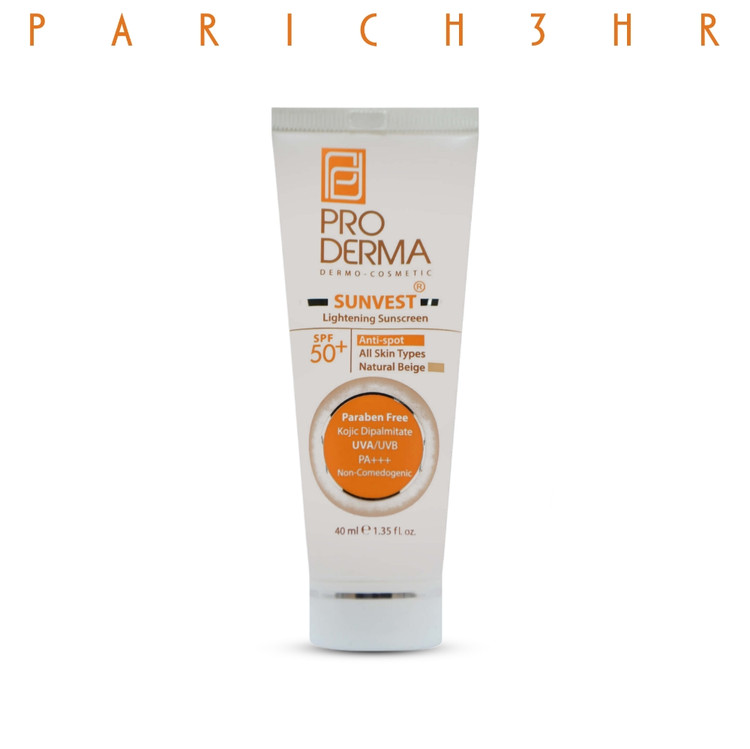 کرم ضدآفتاب SPF50 روشن کننده بژ طبیعی پرودرما